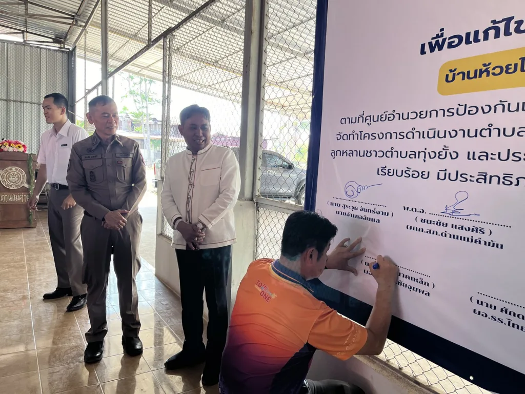 ♦️ โดยมี นาย สุระวุธ จันทร์งาม นายอำเภอลับแล เป็นประธานซึ่งท่านประธานได้มอบนโยบายและแนวทางการดำเนินงาน โครงการดำเนินงานตำบลยั่งยืนเพื่อแก้ไขปัญหายาเสพติดแบบครบวงจรตามยุทธศาสตร์ชาติ ปีงบประมาณ พ.ศ.2568 ในการแก้ไขการแพร่ระบาดของยาเสพติดในชุมชน โดยเสริมสร้างให้ชุมชนเกิดความเข้มแข็ง เข้าใจ และรับรู้ปัญหาพิษภัยของยาเสพติด พร้อมทั้ง ร่วมลงนามข้อตกลง(MOU)โครงการตำบลยั่งยืน ณ ศปก.ตำบลยั่งยืนฯ โรงเรียนบ้านห้วยขมิ้น หมู่ที่ 5 ตำบลทุ่งยั้ง อำเภอลับแล จังหวัดอุตรดิตถ์