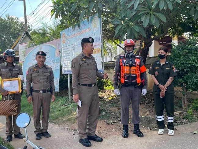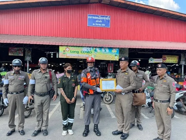 ผลการดำเนินงาน ด้านอำนวยการและบริการทั่วไป/ด้านบริหารงานและพัฒนาบุคลากร ประจำเดือน พฤศจิกายน 2566 10 พฤศจิกายน 2566 โดย admin / ผลการดำเนินงานของสภ.ด่านแม่คำมัน,(งานอำนวยการ),ผลการดำเนินงานของสภ.ด่านแม่คำมัน วันที่ 6 พฤศจิกายน 2566 เวลาประมาณ 09.00 น. พ.ต.อ.วิเชียร เพชรเสนา ผกก.สภ.ด่านแม่คำมัน พ.ต.ท.สุรเชษฐ์ เขียวไทร รอง ผกก.ป.สภ.ด่านแม่คำมัน พ.ต.ท.พงศ์พิสิษฐ์ ปัญญา สวป.สภ.ด่านแม่คำมัน พร้อมข้าราชการตำรวจ สภ.ด่านแม่คำมัน ดำเนินการโครงการ สถานีตำรวจภูธรด่านแม่คำมันปันน้ำใจ ได้มอบสิ่งของและใบประกาศนียบัตร ให้กับนายทวิช มั่นสกุล ซึ่งเป็นอาสาจราจรของ สภ.ด่านแม่คำมัน ณ หน้าตลาดสดทุ่งยั้ง Post Views: 43 Facebook iconFacebookTwitter iconTwitterLINE iconLine