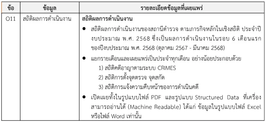 -O11 สถิติผลการดำเนินงาน