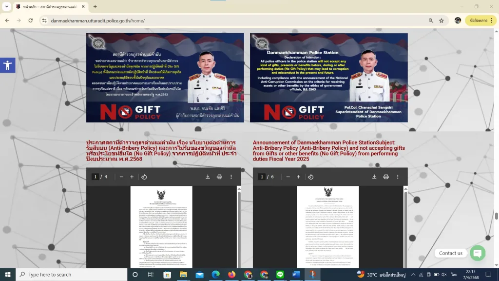Announcement of Danmaekhamman Police Station Subject: Anti-Bribery Policy (Anti-Bribery Policy)