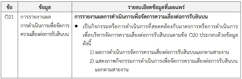 -O21 การรายงานผลการดำเนินการเพื่อจัดการความเสี่ยงต่อการรับสินบน