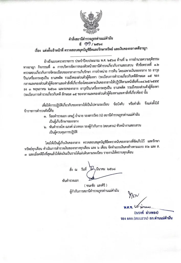 0007.22-3407 ลง 5 พ.ย.64ให้ตรวจสอบอาวุธปืนและเครื่องกระสุนปืน