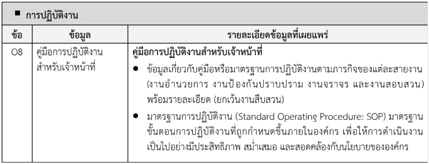 ข้อมูลเกี่ยวกับคู่มือหรือมาตรฐานการปฏิบัติงาน ตามภารกิจของแต่ละงาน (งานอำนวยการ งานป้องกันปราบปราม งานจราจร งานสอบสวน ) ***ยกเว้นงานสืบสวน*** พร้อมรายละเอียด